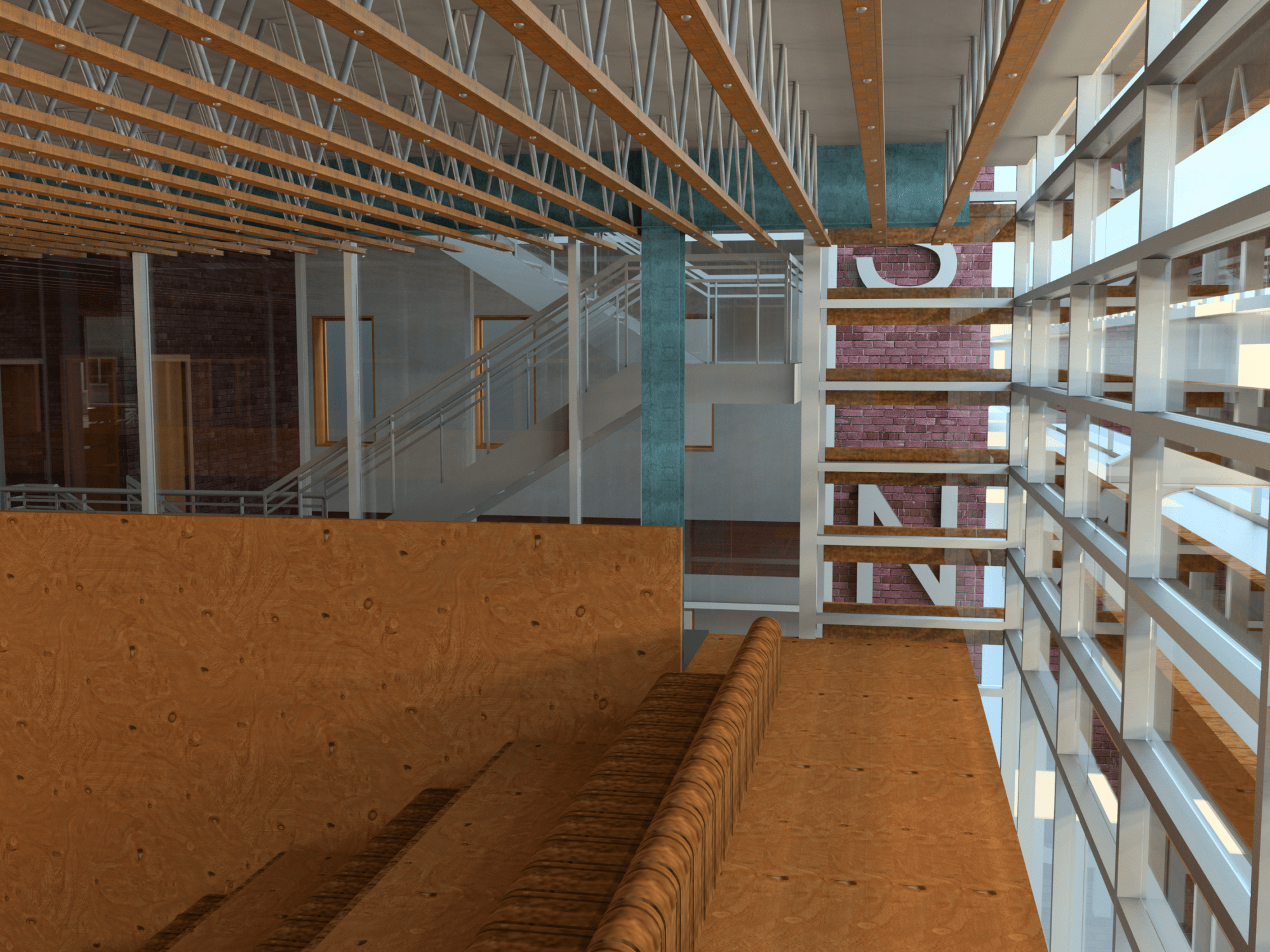 The NSNP is a youth focused community center in Philadelphia. My project focused on creating more open social spaces while still maintaining both a level of privacy and respect for the historic row house architecture of the neighborhood. The ‘vacant lot’ comes from the NSNP’s history of converting abandoned lots into community gardens. In my project I used the form of a vacant lot (an open space flanked by a pair of row-houses) to create my community spaces. The large slat-work themed auditorium bridges the two block units. Then, on top, is a very large urban garden where the center could grow its teaching gardens, as well as hold its cooking classes.